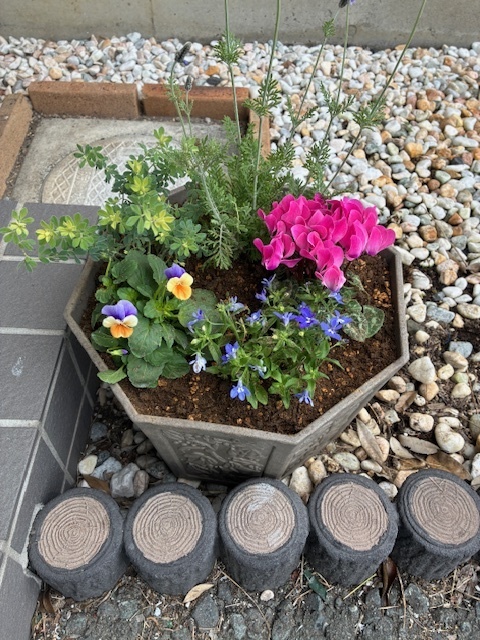 社員で、草を刈って、土を掘り起こし、ブロックを並べ、ちょっとした花壇の出来上がり!