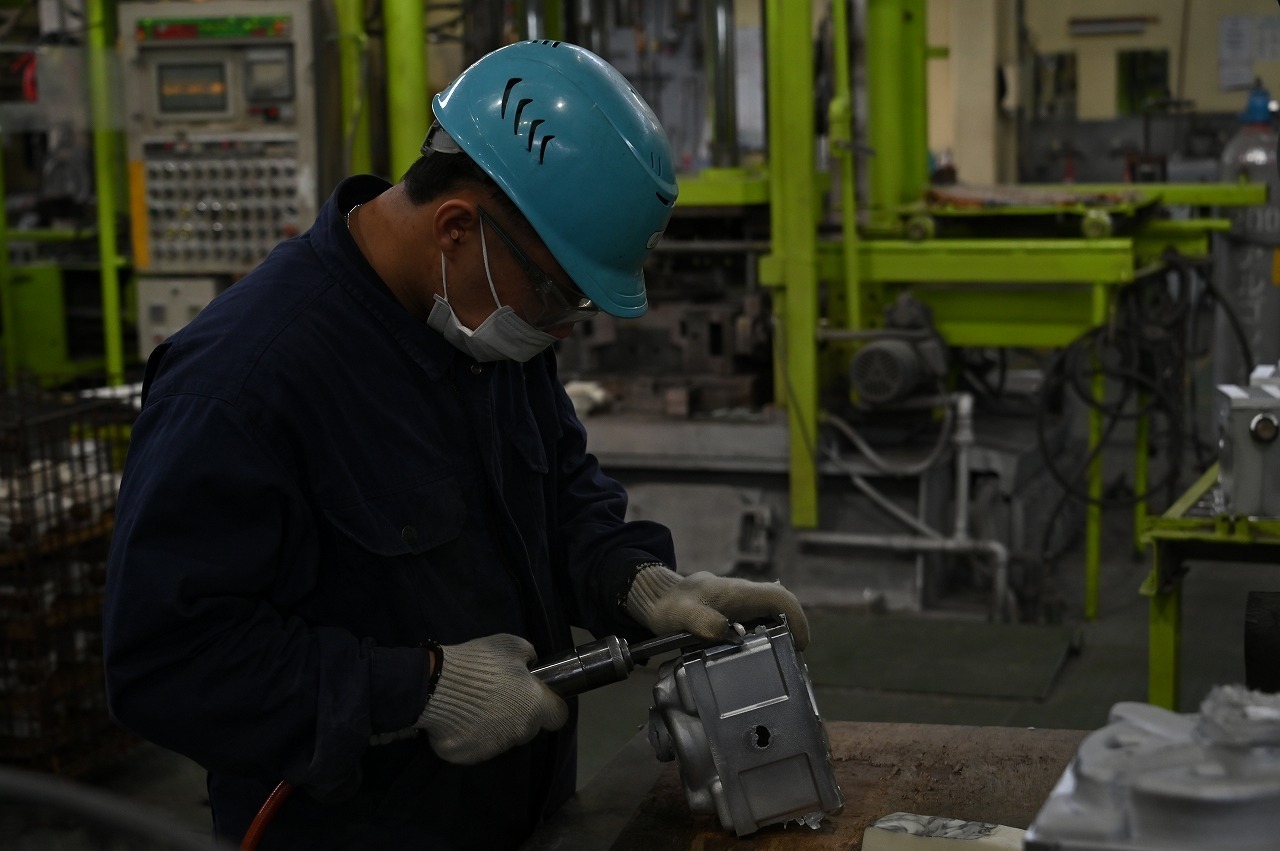 バリ取りをしているのは、ヴィンさん。来日してすぐに弊社で働いて、日本語もかなり上達。真面目にコツコツと頑張って